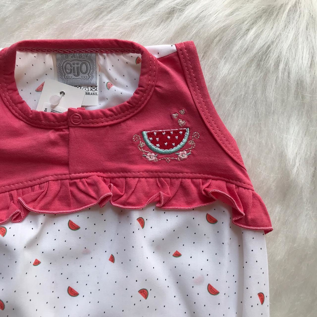 Banho de sol Baby Gijo Melancia com detalhes em babados, bordado de melancia, fechamento em botões de pressão!