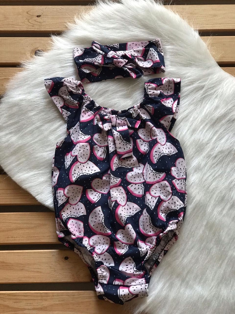 Características: Body romper com manga princesa, fechamento em botão e um lindo laço!