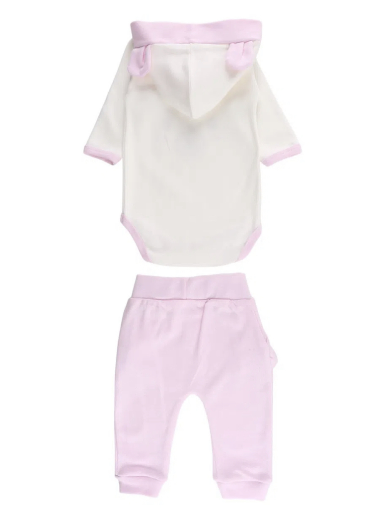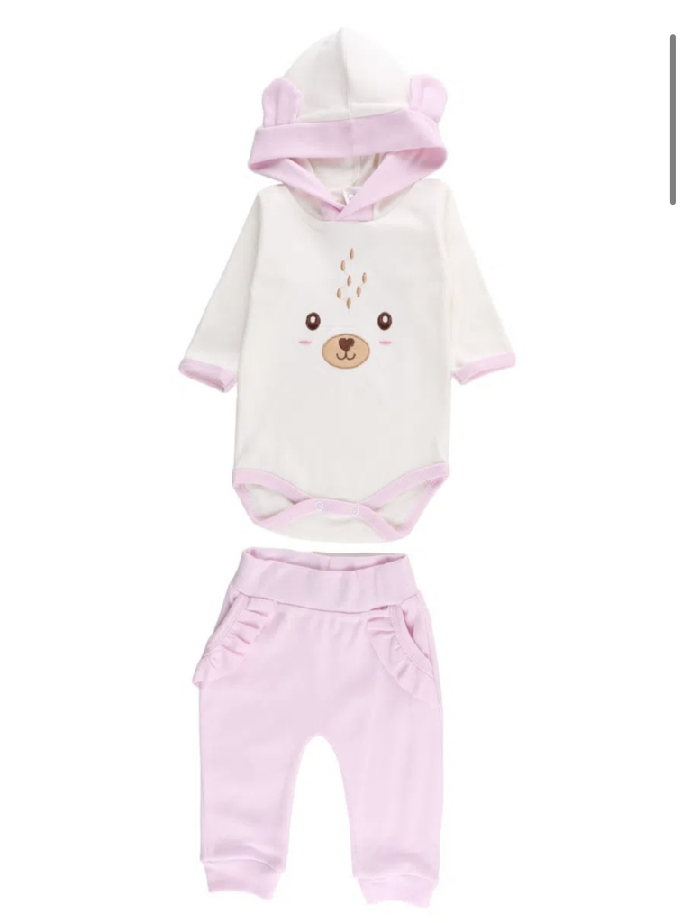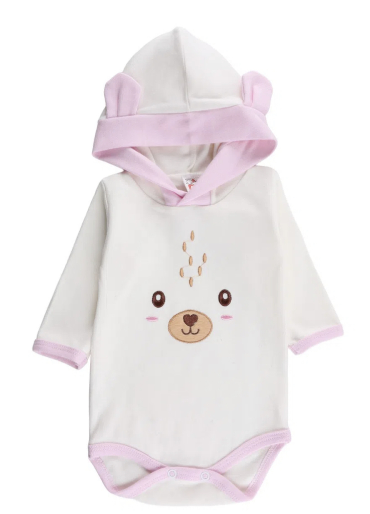 Body em suedine manga longa com capuz e orelhinhas super fofas! Possui bordado de ursinho e fecho com botões entrepernas.