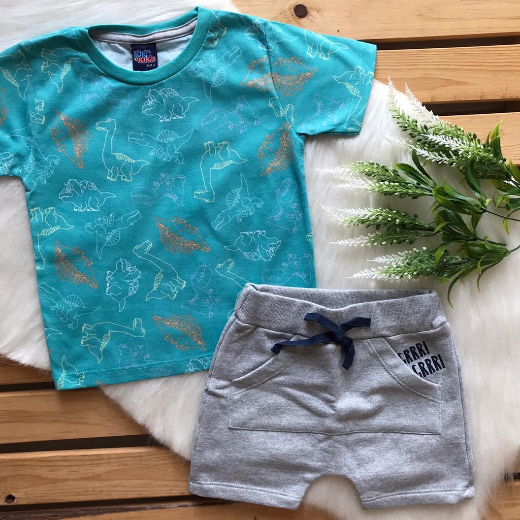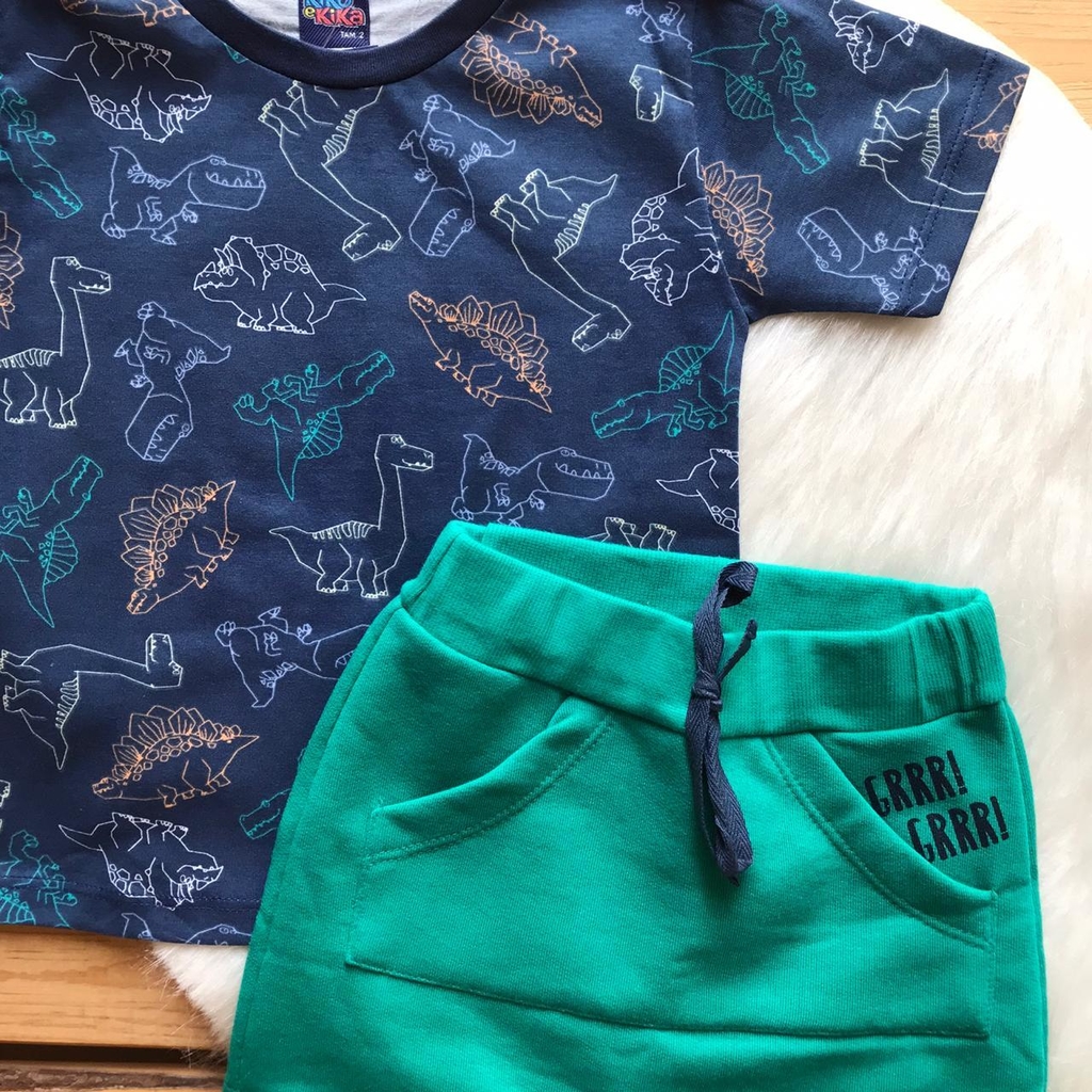 Conjunto Camiseta + Bermuda Dinossauros Kiko e Kika, camiseta estampada em meia malha e bermuda de moletom. Na hora de comprar a roupa do seu pequeno, conjuntos são sempres ótimas opções. Montados por quem mais entende de moda e ainda combinam um estilo único para o seu filho ficar lindo e livre para se divertir!