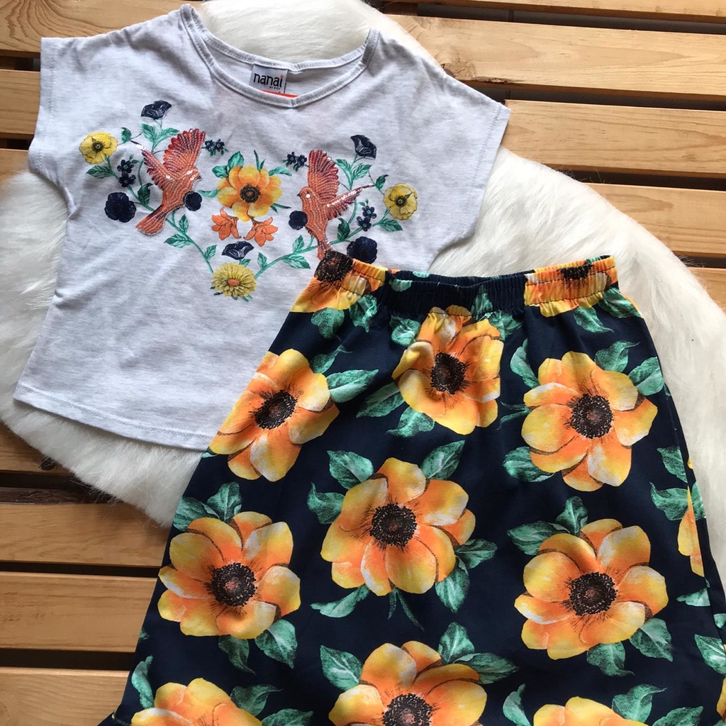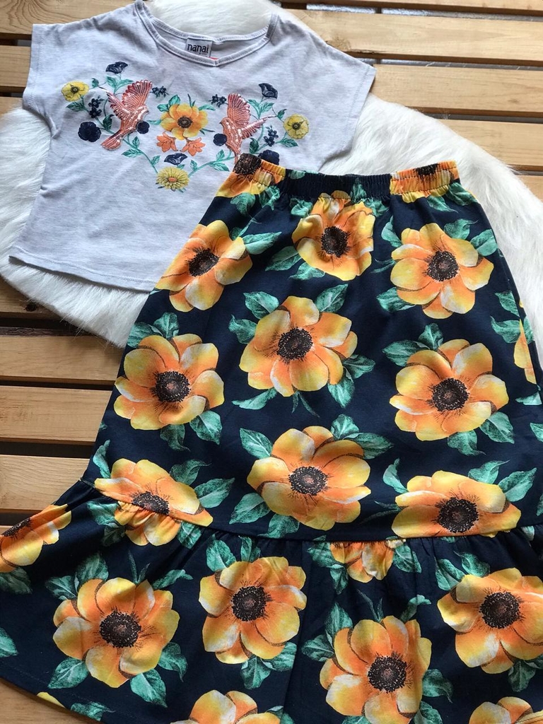 Composição: Blusa: 98% Algodão e 2% Poliéster/ Saia: 100% Algodão