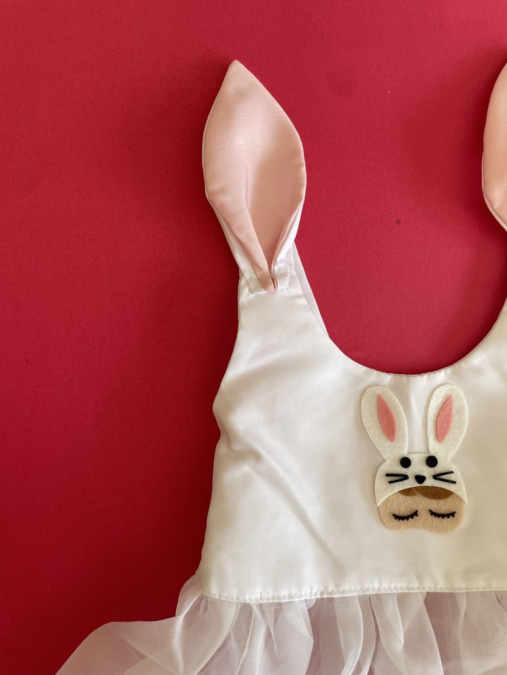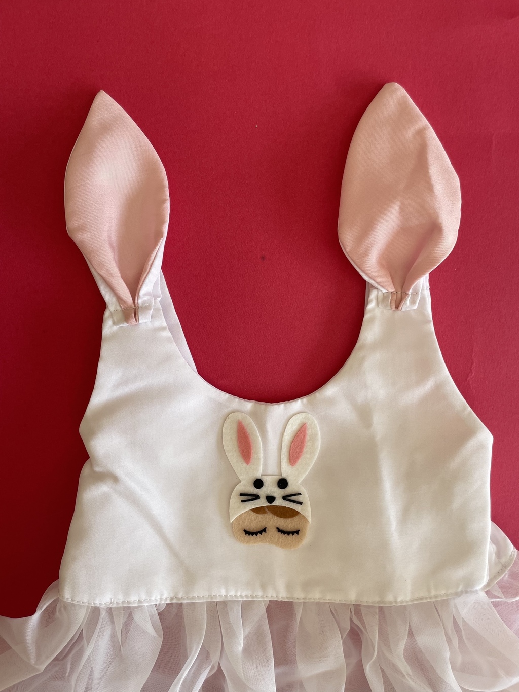 Blusinha modelo bata com orelhinhas nas alças e aplicação de desenho frontal.