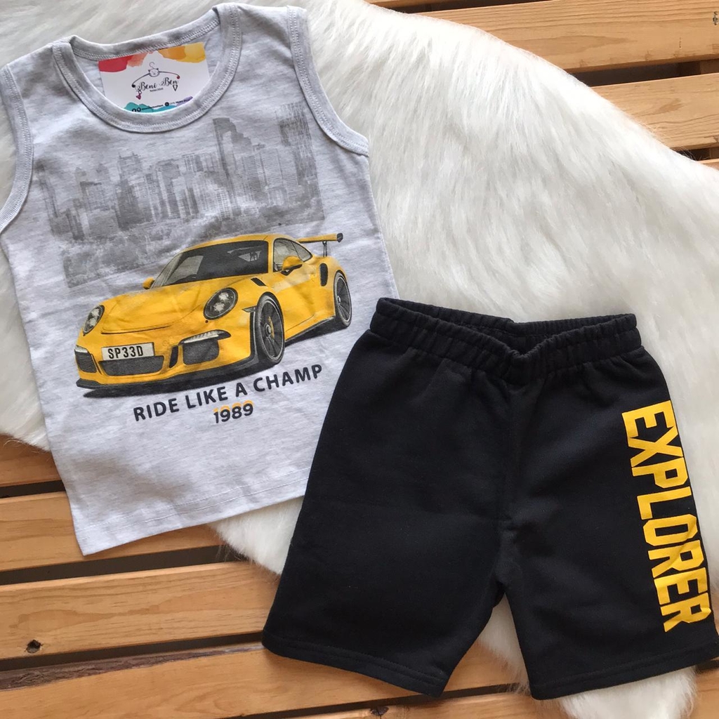 Conjunto Infantil Masculino Kyly é composto por Regata em Meia Malha e Bermuda em Moletom sem felpa.