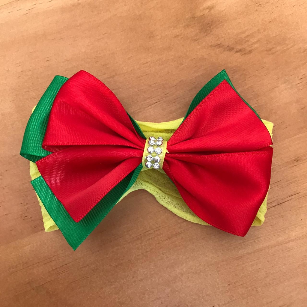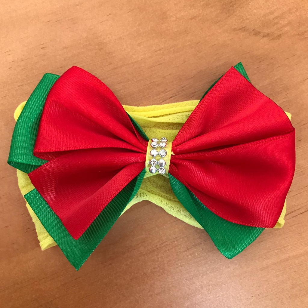 Faixa para cabelo, com um lindo laço cololiro, na cor vermelha, verde e amarelo!