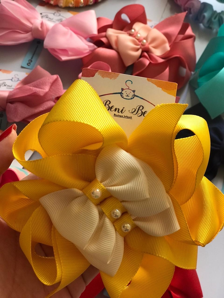 Lindo laço amarelo com + 3 minilaços em detalhe central!