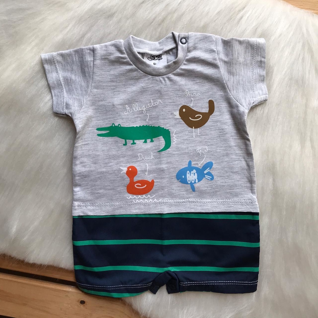 O macacão Beka possui uma estampa linda e divertida de animais, além de detalhe listrado nas pernas!