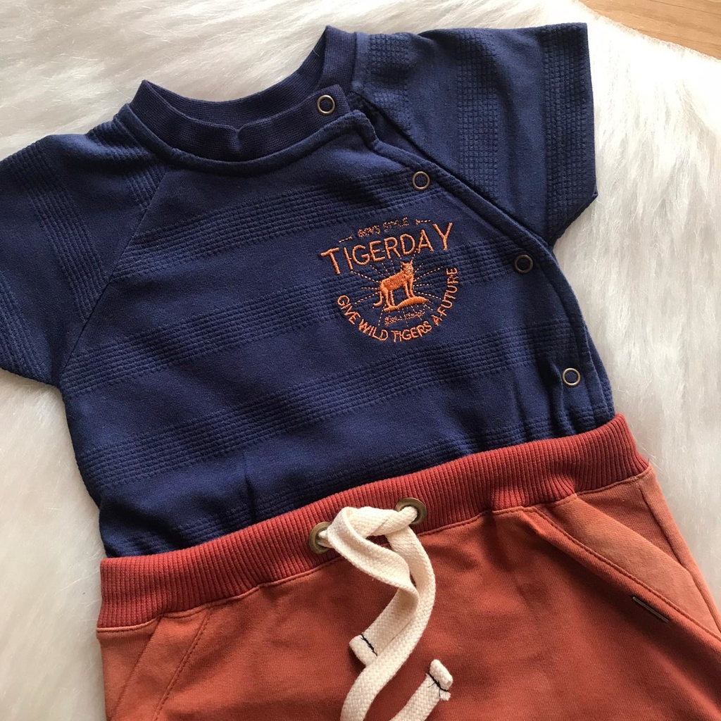 A parte superior em meia malha com detalhe bordado, parte inferior em moletom com cordão e fecho por botões de pressão.