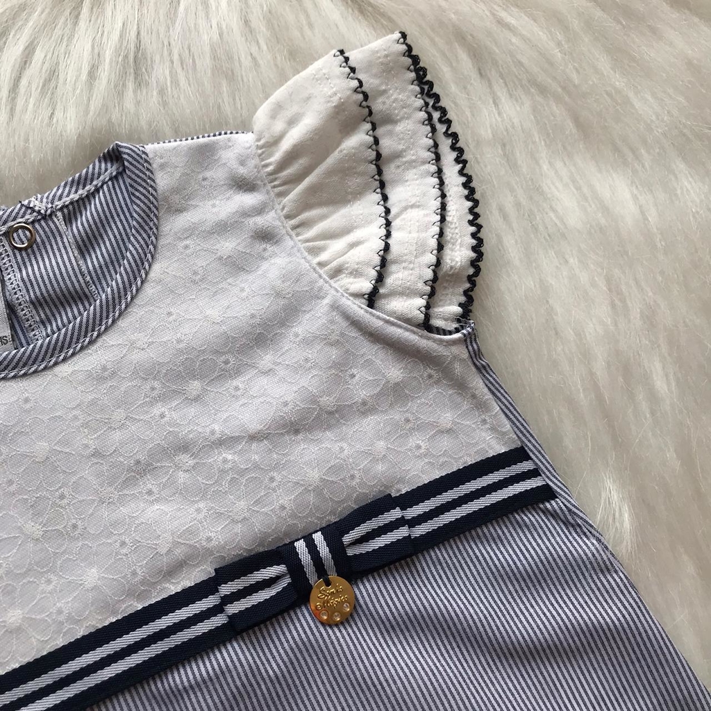 Macacão curto Sonho Mágico Listrado, mangas com babados, detalhe em laço e pingente dourado!
