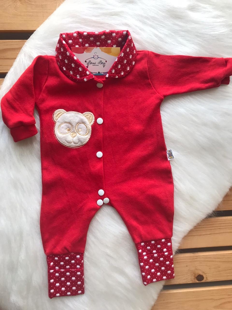 Possui bordado de ursinho no peito e estampa de pequenas coroas na gola e nos pés!