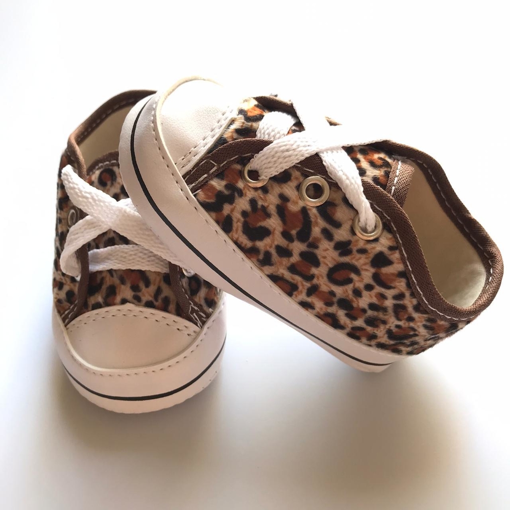 Tênis com cadarço, acabamento em estampa rotativa de oncinha!