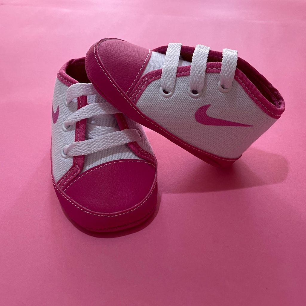 Possui ajuste por cadarço branco, acabamento em viés em cor combinada ao calçado e linha no solado confeccionado em material macio e leve.
